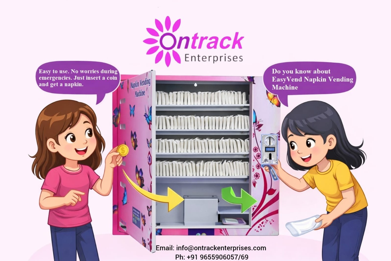 Ontrack Enterprises is a trusted manufacturer of high-quality Sanitary Napkin Vending Machines based in Coimbatore, Tamil Nadu. We are committed to promoting hygiene and women’s health by offering reliable, easy-to-use, and durable vending solutions. Our machines are designed using quality components to ensure long-lasting performance with minimal maintenance. With a strong focus on product quality, customer satisfaction, and affordability, we provide vending machines suitable for schools, colleges, offices, factories, hospitals, and public places. Each product is tested for efficiency, safety, and user convenience. Ontrack Enterprises proudly supplies Sanitary Napkin Vending Machines across India, ensuring timely delivery and dependable service support. Our goal is to make hygienic solutions accessible everywhere through innovative and dependable products.